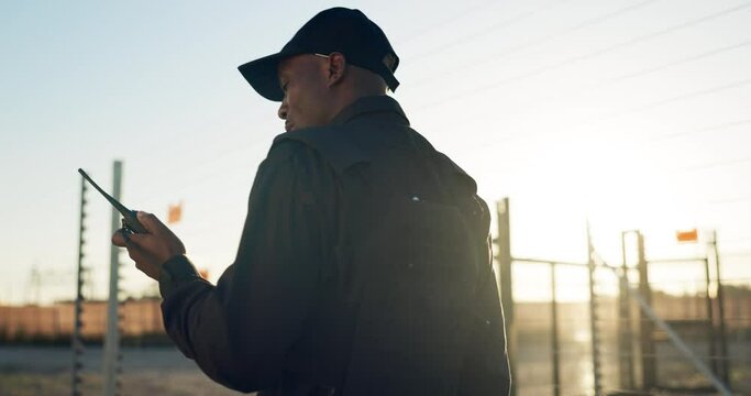 Tecate, Baja California, Mexico - September 14, 2021: Late afternoon sun shines on the USA Mexico border wall as it winds through Tecate.
