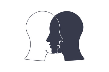 BPD Simple concept. Minimalistic Icon of human head with bipolar disorder or borderline personality disorder. Emotional dualism and Split Personality Disorder. Mental illness. Vector illustration
