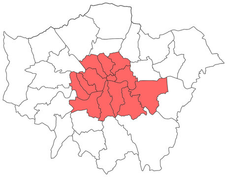 Map of London highlighting the Inner Boroughs. Ideal for urban planning, demographic studies, or projects focusing on the city's central area