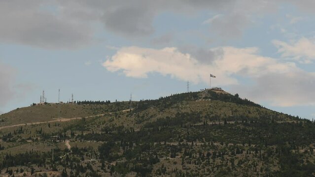 Bosnian Flag on a Hill, Patriotic Symbol, Bosnia and Herzegovina, Wide shot