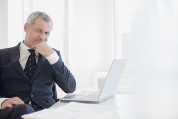 Celebrating Boss's Day with a personalized mug and laptop on a white desk
