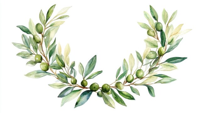Watercolor illustration of an olive tree wreath Suitable for menu designs wedding invitations or greeting cards Hand drawn artwork