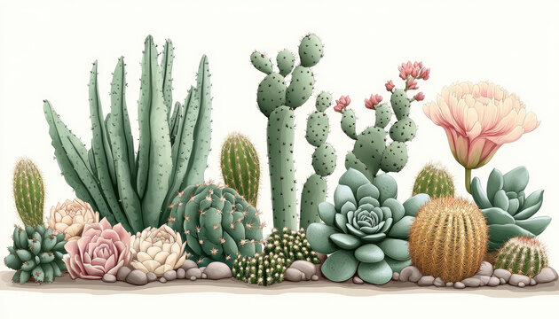 Dreamy cactus garden under glass dome, a surreal botanical concept, perfect for nature lovers and creative design projects, a touch of desert elegance