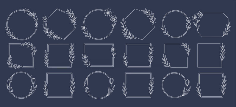 Minimal floral frames set – hand drawn botanical borders for invitations and branding
