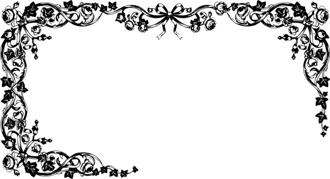 Elegant vintage rose vine border with delicate ribbon adds ornate charm to invitations and designs silhouette and cutout removed background