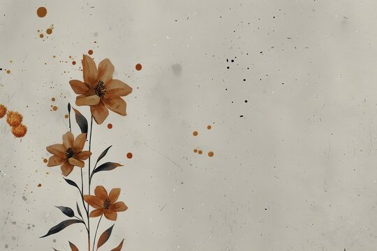 Watercolor-style floral illustration with orange blossoms and scattered dots on a textured background