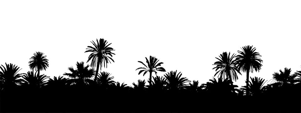 Set of tropical leaves silhouettes. Collection palm leaves. Jungle exotic leaves and botanical plants. Vector illustration.