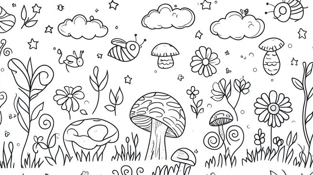 A black and white clipart bundle of wildflowers, a daisy and chamomile flower