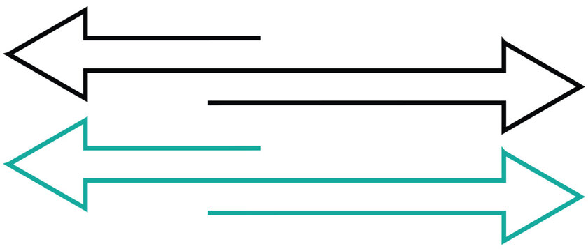 arrows pointing both ways. Both sided right left pointing arrow. Horizontal double-headed arrow. Dual sided arrow vector. Arrows data transfer icon. EPS10
