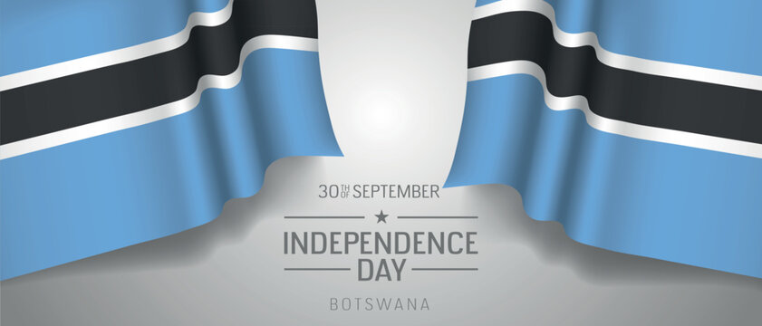 Botswana happy independence day greeting card, banner with template text vector illustration. Botswanan memorial holiday 30th of September design element with 3D flag with stripes