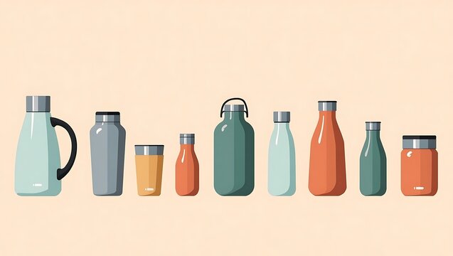 Collection of various stylish insulated bottles and containers