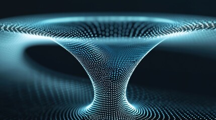 A funnel-like structure, with abstract data or particles being compressed into a tight bottleneck before expanding into an open space, illustrating pressure before breakthrough