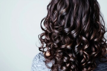 Hair model standing with her back to the camera, long, sleek hair falling down her back like a waterfall, studio lighting emphasizing the glossy, smooth strands, dark background for contrast,