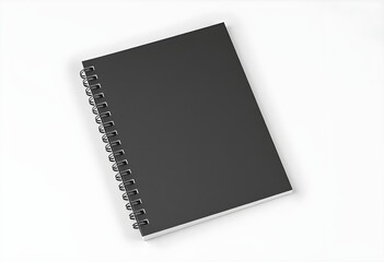 Dark grey spiral bound notebook mockup isolated on white background | Realistic black wire-o notepad template for branding design | Overhead view of closed journal with blank cover presentation | Prof
