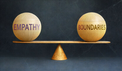 Empathy and Boundaries in balance - a metaphor showing the importance of two aspects of life staying in equilibrium to create a perfect condition, Generative AI,3d illustration