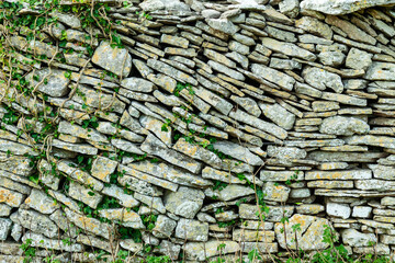 Tecate, Baja California, Mexico - September 14, 2021: Late afternoon sun shines on the USA Mexico border wall as it winds through Tecate.