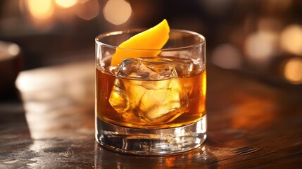A rich glass of golden bourbon with subtle caramel and vanilla notes, served neat