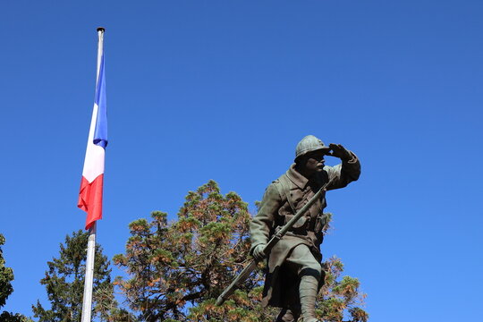 Monument aux morts de la première guerre mondiale dans le jardin du bout du monde, ville de Chateau Gontier sur Mayenne, département de la Mayenne, France