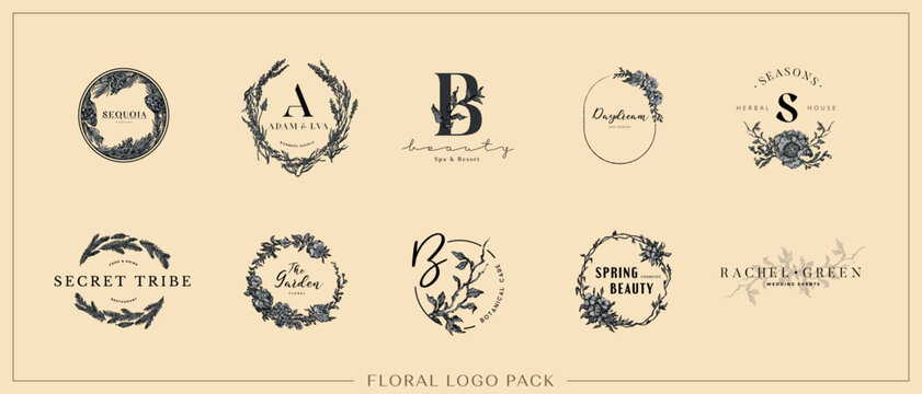 Hand drawn logo design, Floral logo design, Feminine branding, Botanical logotype, Twigs emblem, Collectin, Premade logo, Flower clipart, Logo Pack