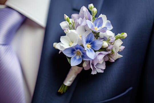 groom's boutonniere with periwinkle   flower