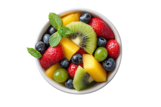PNG Refreshing fruit salad with kiwi, strawberries, and blueberries in white bowl