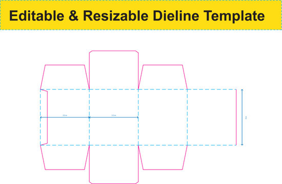Editable and resizable dieline template for a box with dashed fold lines Keywords: dieline