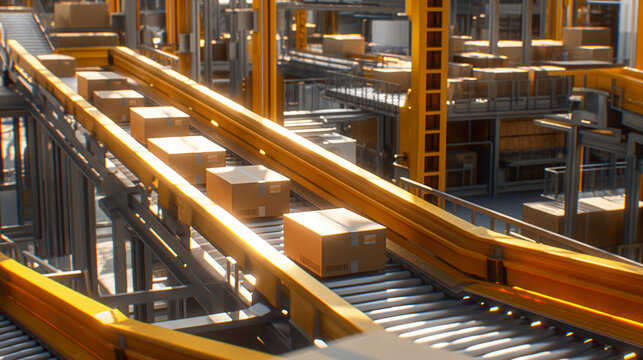 Cardboard boxes on conveyor belt in factory