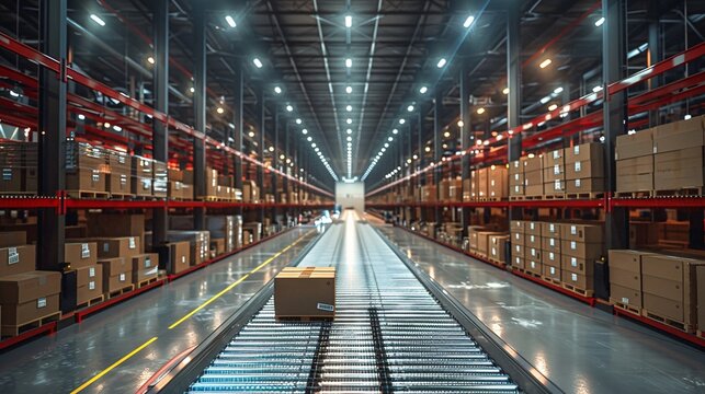 A high-tech warehouse with AI-driven parcel sorting systems