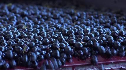 Harvest red vine-Manual sorting table, Worker processing freshly harvested grapes