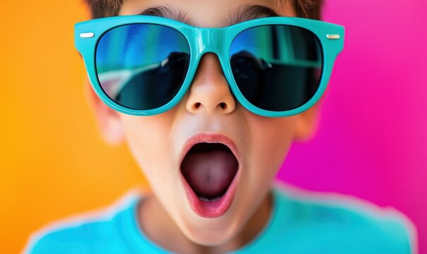 a cartoon boy wearing sunglasses and a hoodie, set against a white background He has a cheerful expression on his face, and his eyes are wide open, giving him a fr