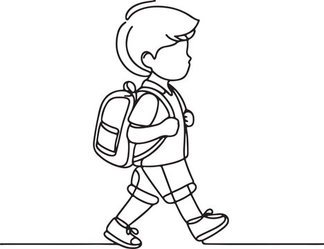 Line Drawing of Little Boy with Backpack - School Day Theme