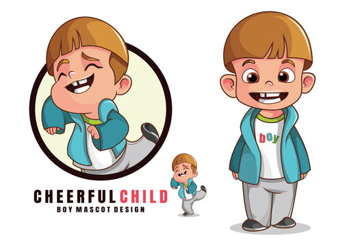 Cheerful Boy Kid Mascot Icon – Cartoon Happy Child and Playful School Character Illustration