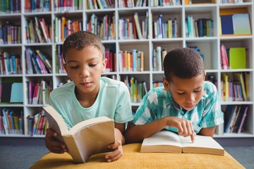 Caucasian boys reading book for back to school month