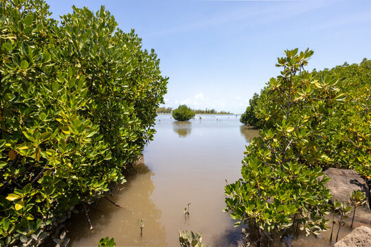 Mangroves in brackish water on the coast creating shoreline stabilization and a home for a rich biodiversity