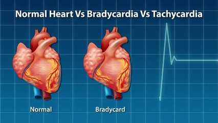Animation comparing normal heart beat wave with bradycardia and tachycardia sickness.