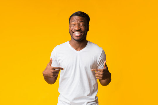 Black Man Pointing Fingers At Himself Smiling Over Yellow Background