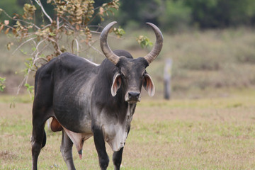 brahman bull on a farm for genetic improvement of beef cattle in Brazil
