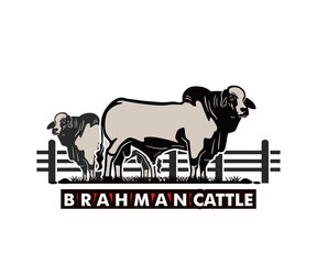 GREAT BRAHMAN CATTLE BREEDS LOGO, silhouette of strong bull standing vector illustrations