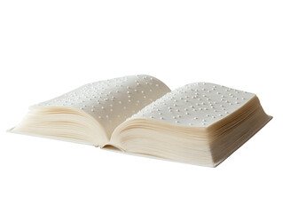 Open Braille book with raised dots, close-up detail, isolated on a white background.  PNG transparent.