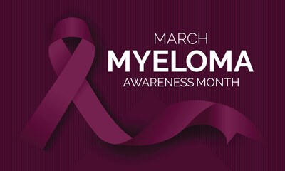 Myeloma awareness Celebrated in March annually. poster , banner and Realistic ribbon. Vector illustration.