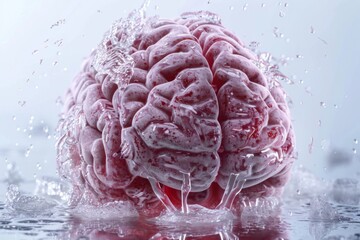 Cryonics and the Pursuit of Eternal Life: A Detailed Illustration of a Frozen Brain Encased in Ice for Future Revival