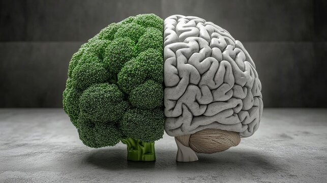 Mindful nutrition concept with brain shaped as a garden of vegetables