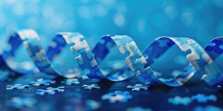 A woman holding a jigsaw puzzle with a blue background, Alzheimer's disease concept