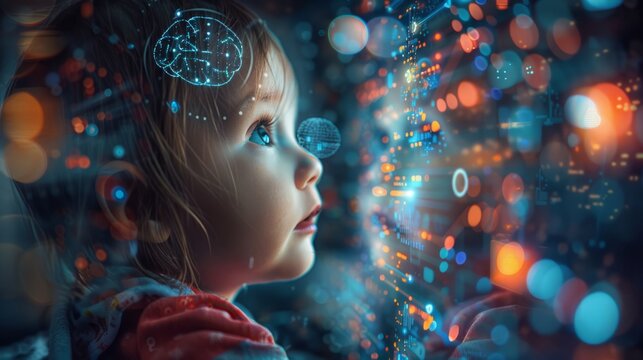 Graphic the brain, the cute child is playing with building blocks to practice skills and develop their brain Intelligence and Creativity.