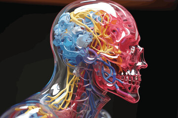 Brain rot internet communication concept. A surreal image depicting a brain transforming into a chaotic mass of corrupted data, symbolizing the fusion of technology and human cognition.
