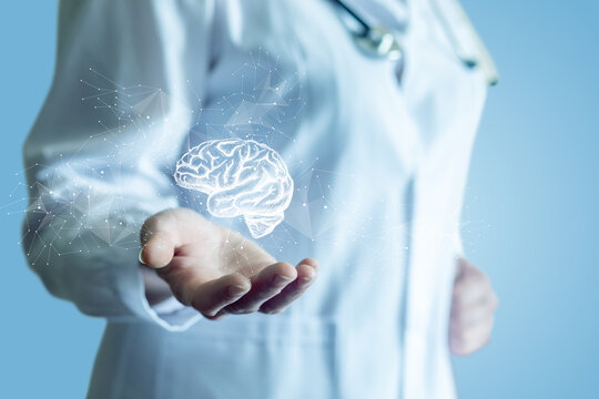 A doctor demonstrates a brain .