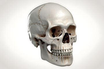 Full realistic 3D rendering of a human skull showing cranial bones and detailed anatomy for educational and medical study