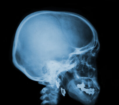 X-ray image of skull human. Medical examination, x-ray for medical diagnosis