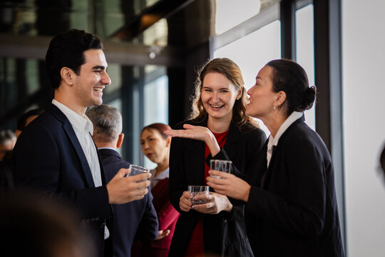 Business professionals networking and enjoying drinks at a corporate event