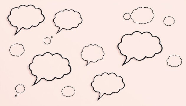 Cloud Thought Bubbles on Pink Background, Idea Collection Template, Brainstorming Discussion Framework